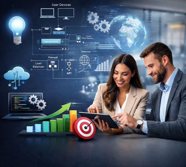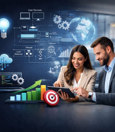 Impulsa tu negocio hacia el futuro con soluciones que automatizan y digitalizan procesos clave. Analizamos tu operación actual y diseñamos mejoras alineadas a tus objetivos, implementando aplicaciones en la nube como: tienda digital, gestión de inventario, órdenes de trabajo, facturación y más.
